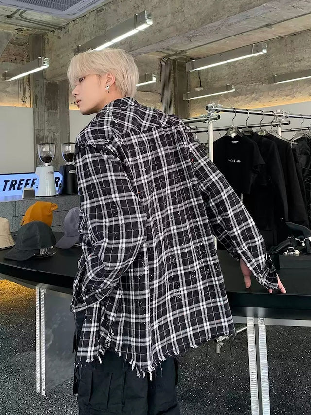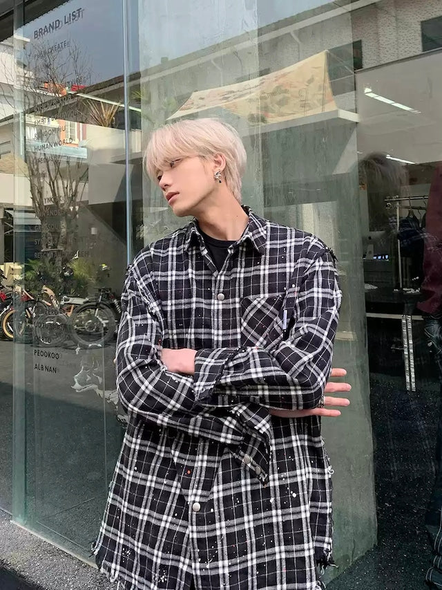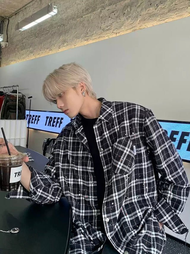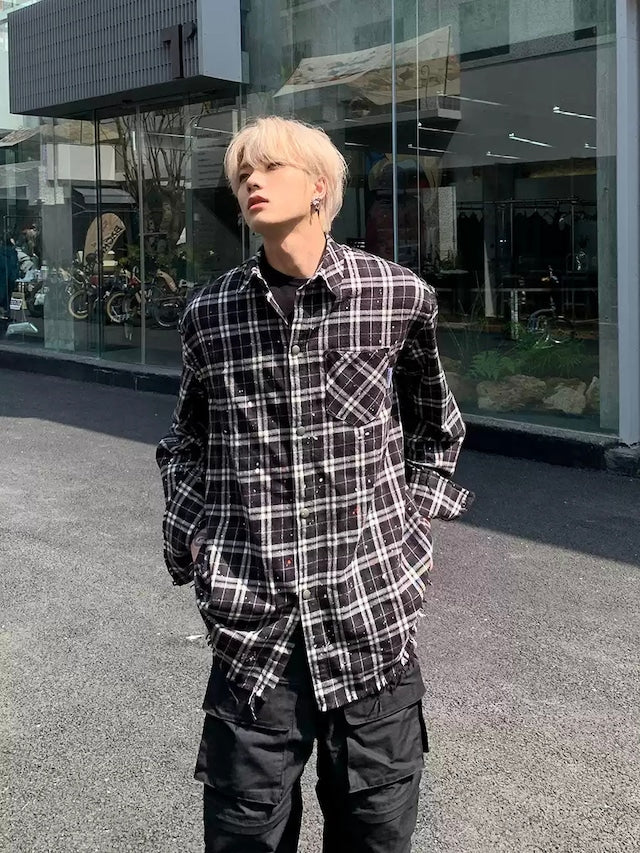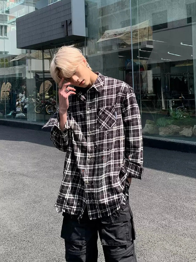 チェックシャツ×ペイントデザインが