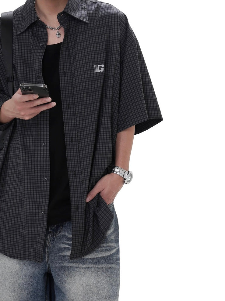 ルーズチェックコリアンシャツ bt2140