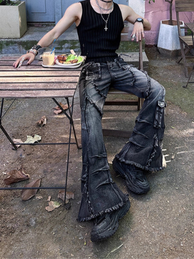 【10.6新作】ダメージストリートフレアデニムパンツ bt2197